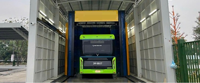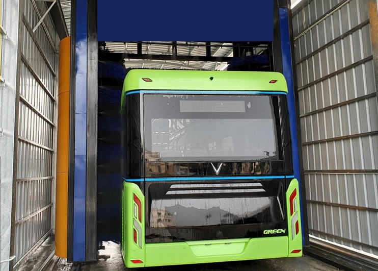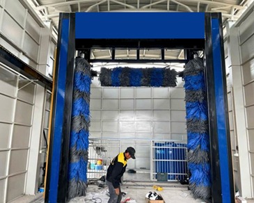 El sistema detecta automáticamente el tamaño del vehículo. Equipado con 3 cepillos (2 laterales + 1 techo) de material esponjoso duradero, sistema de espuma de nieve y sensores de presión. Estructura apta para exteriores.